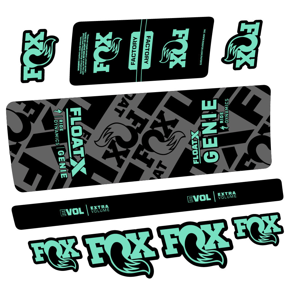 Aufkleber Fox Float X Genie, Hinterraddämpfer, Fahrradaufkleber Vinyl