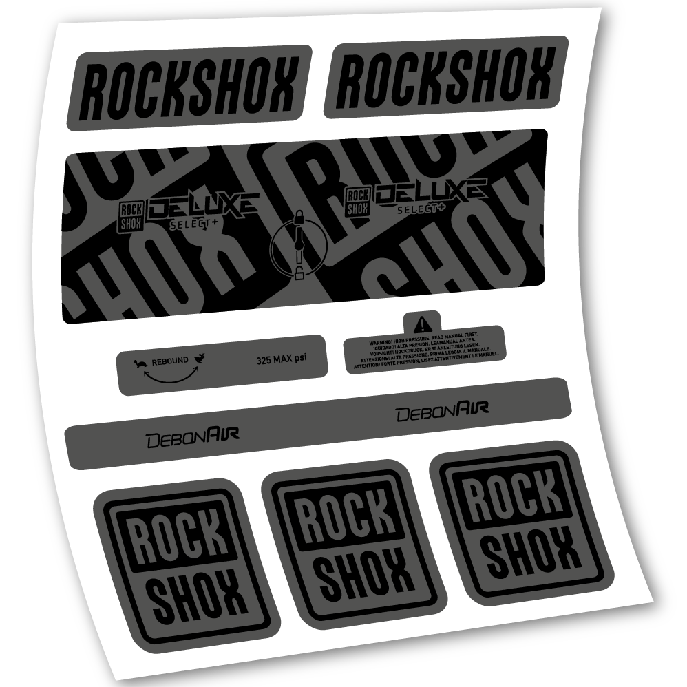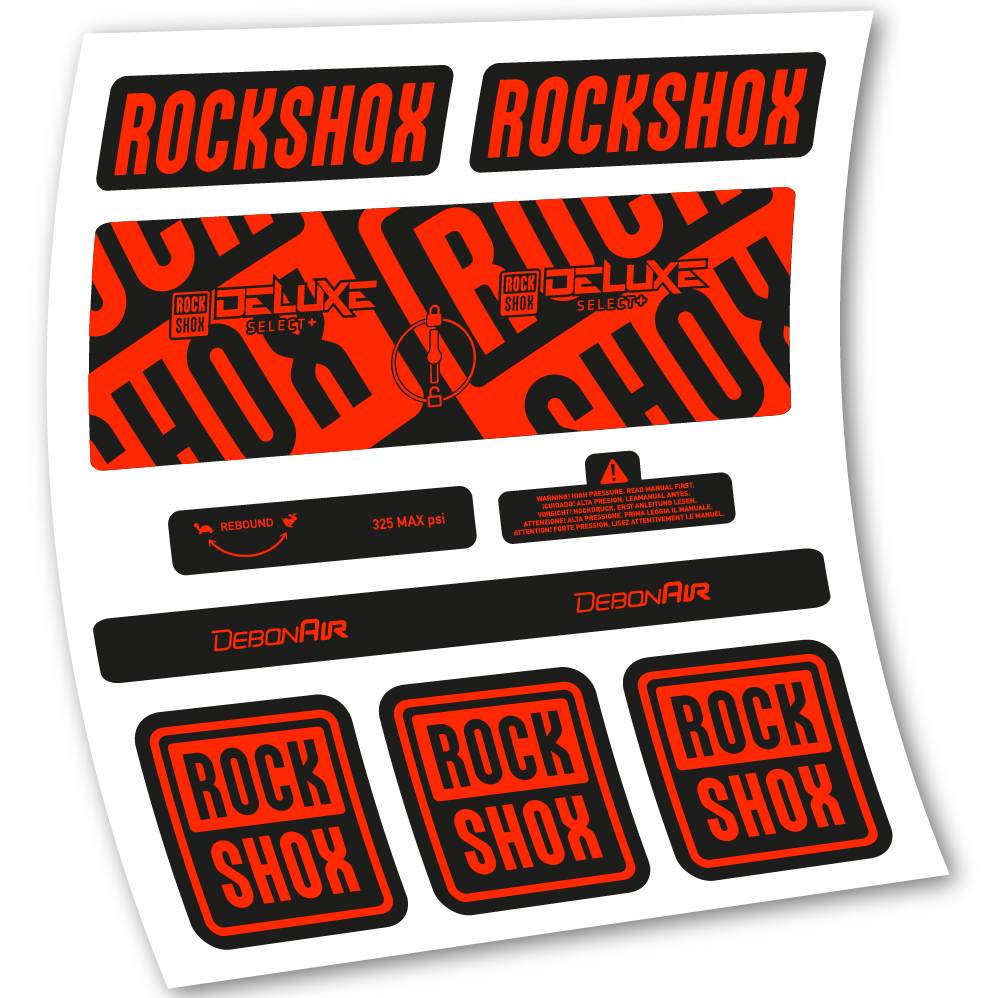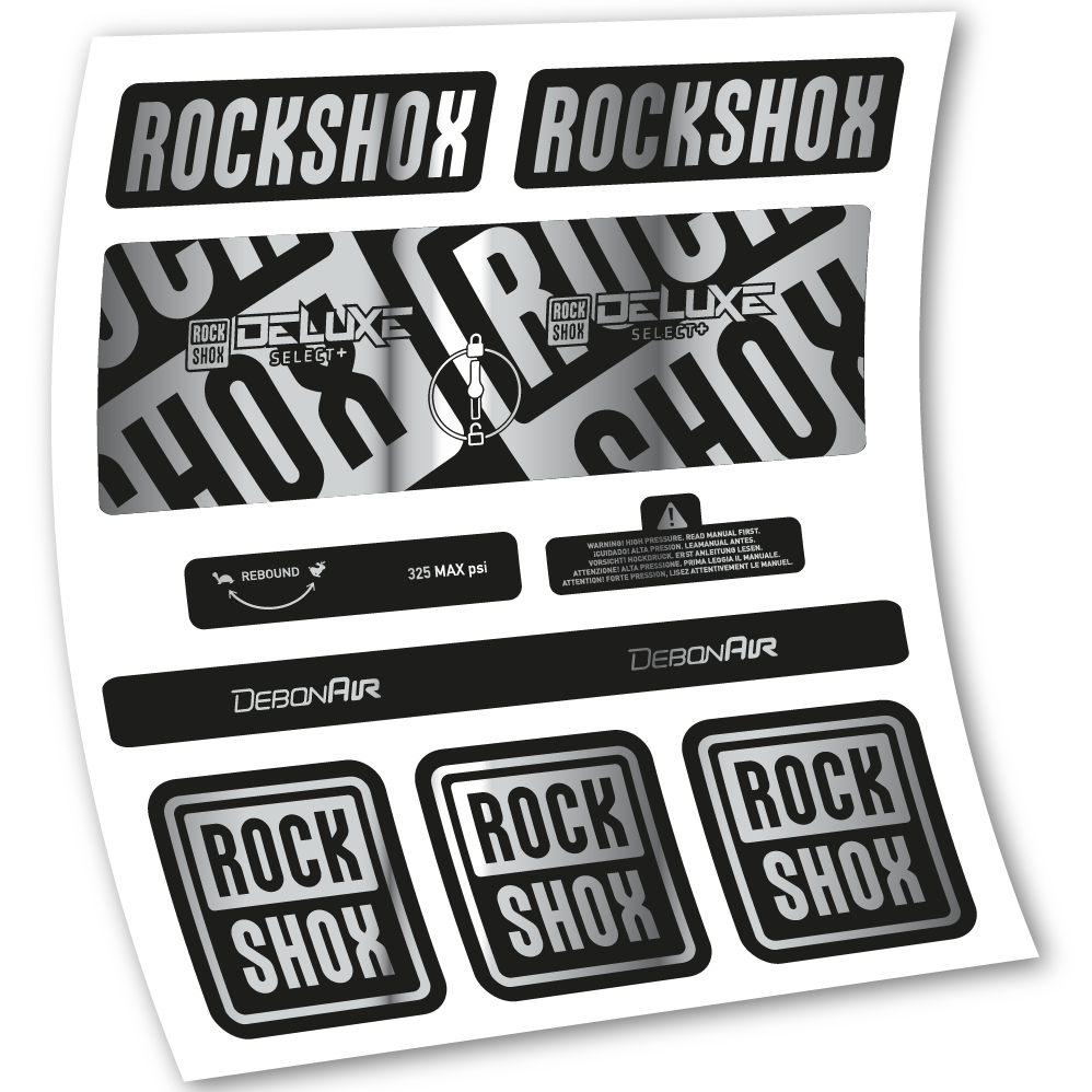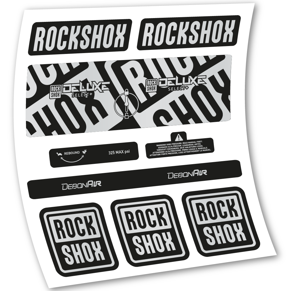 Aufkleber Rock Shox Deluxe Select+, Hinterraddämpfer, Vinyl-Aufkleber
