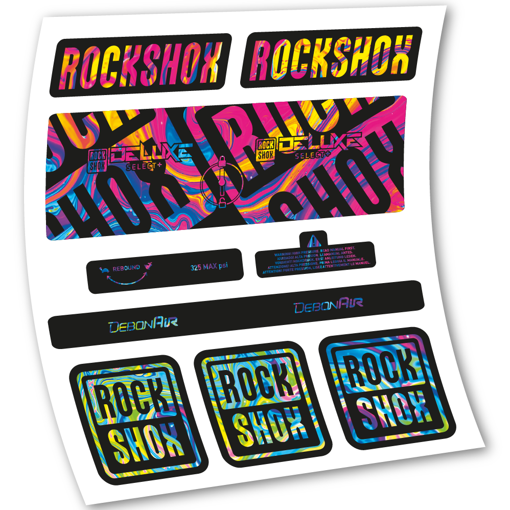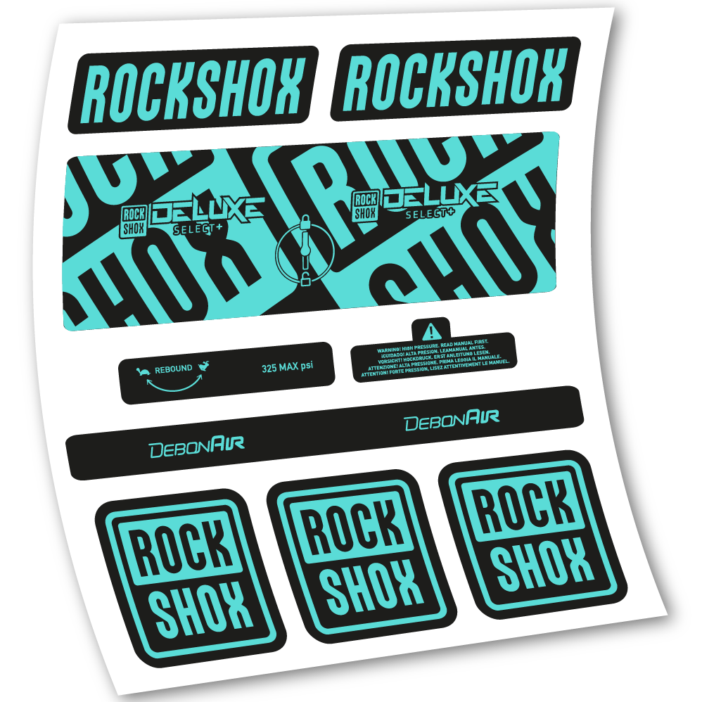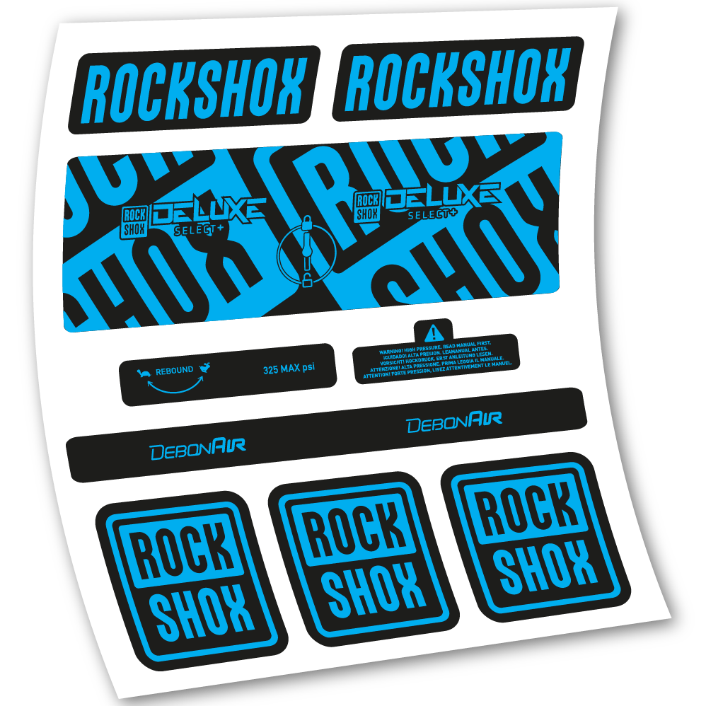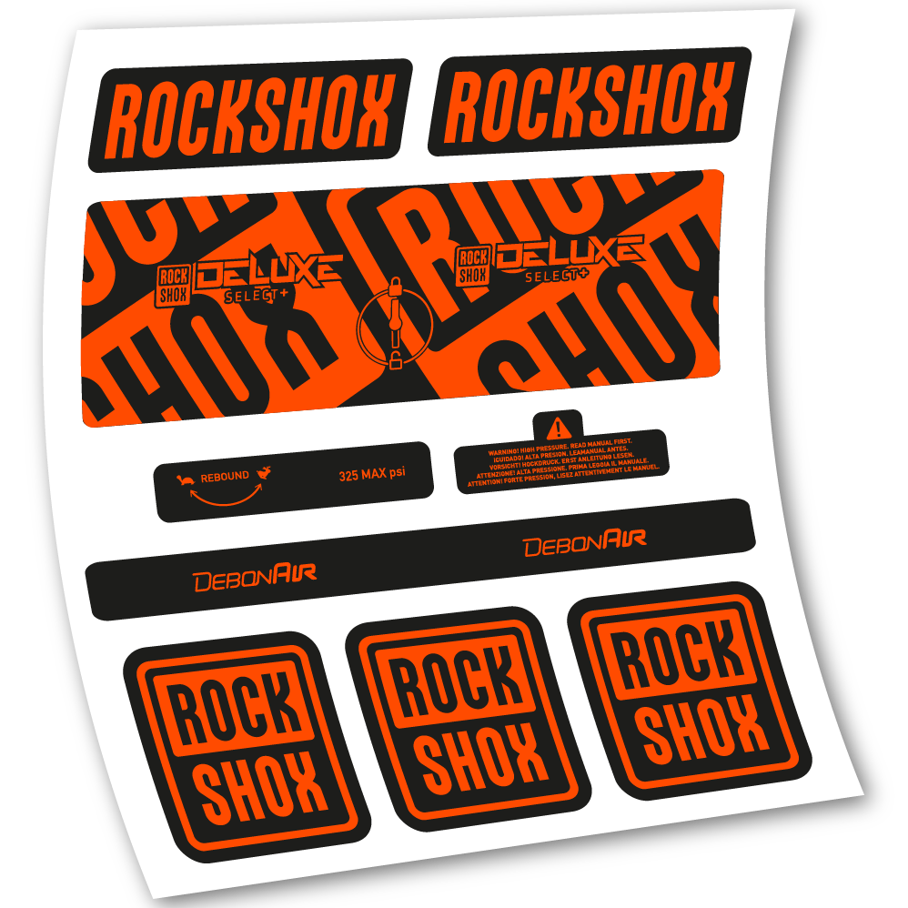 Aufkleber Rock Shox Deluxe Select+, Hinterraddämpfer, Vinyl-Aufkleber